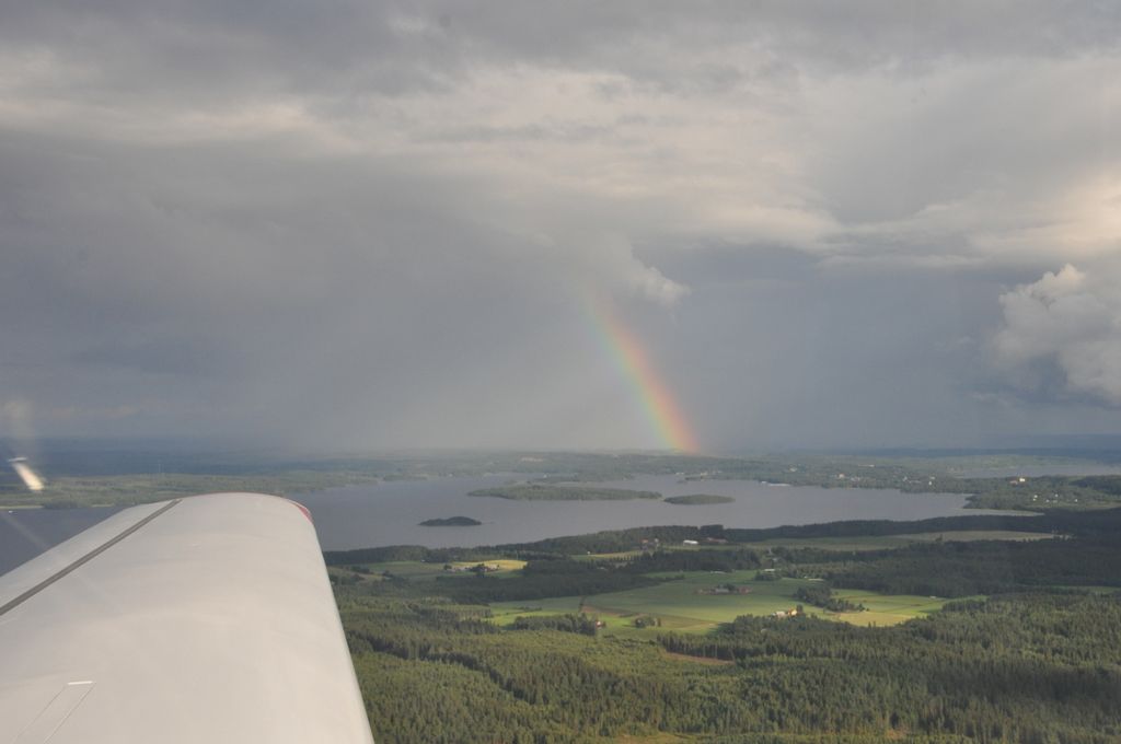 Lähetimme viestin kentälle - matkaan vain! Sinne oli jäänyt vielä OH-XRW odottelemaan mutta pojat lähtivät perään heti kohta. Lensimme reippaassa myötätuulessa kohti Hyvinkäätä erilaisia sääilmiöitä tarkastellen. RV tavoitti meidät jo Kuopion kohdalla, sinne kuuluivat pojat menevän tankille. Tutkamies oli normilupsakka - XRW sai hyvän selvityksen "...selvä lähialueelle ilmoita lähialueen raja ja maanopeus näyttää teillä olevan 134 kts". Kovvoo hommoo!